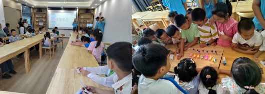 最后實(shí)驗(yàn)結(jié)束,小朋友們各自回到自己原先的座位上,聆聽接下來(lái)由志愿者講解的實(shí)驗(yàn)原理。