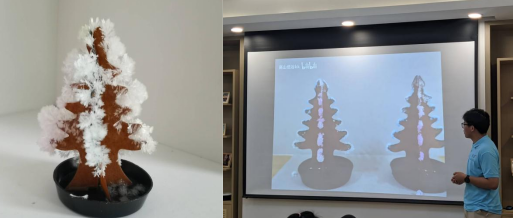 最后志愿者又為大家發(fā)放了紙樹開花的模型,小朋友們拿回家進(jìn)行實(shí)驗(yàn),等待實(shí)驗(yàn)結(jié)果。在實(shí)驗(yàn)結(jié)束后,有許多家長(zhǎng)在群里反送了實(shí)驗(yàn)成功的現(xiàn)象,并表示了孩子們的開心與驚喜。