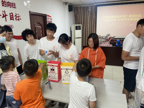 2023年7月14日,南京市棲霞區(qū)馬群街道果場社區(qū)依托社區(qū)新時(shí)代文明實(shí)踐站,聯(lián)合鐘山職業(yè)技術(shù)學(xué)院“蒲公英”生態(tài)實(shí)踐團(tuán)在社區(qū)三樓活動室,組織社區(qū)未成年人及其家庭、“齊益果”積分制志愿者、民兵志愿者共同開展“垃圾分類大家談”志愿服務(wù)活動。