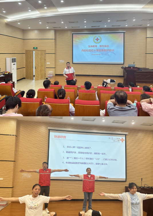 為進(jìn)一步普及急救知識(shí),提高社區(qū)居民急救技能,7月14日,南京市江寧區(qū)橫溪街道丹陽(yáng)社區(qū)通過(guò)邀請(qǐng)紅十字會(huì)專業(yè)救護(hù)師在丹陽(yáng)中學(xué)報(bào)告廳,面向社區(qū)工作人員、企業(yè)安全員、學(xué)校教師、物業(yè)及部分轄區(qū)居民開(kāi)展應(yīng)急救護(hù)培訓(xùn)活動(dòng)。