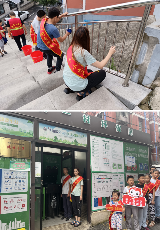 線上,電瓷新村社區(qū)通過掌上云社區(qū)宣傳愛護環(huán)境的重要性,引導居民們養(yǎng)成良好的行為習慣,自覺進行垃圾分類。線下,社區(qū)招募的小小文明宣講員們不怕酷暑難耐,充分發(fā)揮不怕臟、不怕累的精神,在小區(qū)里擦拭樓梯扶手,并向居民們宣傳不隨地亂扔垃圾、遛狗要牽繩等文明行為,動員廣大群眾積極參與到社區(qū)人居環(huán)境綜合整治工作中來,引導群眾轉變思想觀念,踐行綠色生活,助力環(huán)境衛(wèi)生整治。