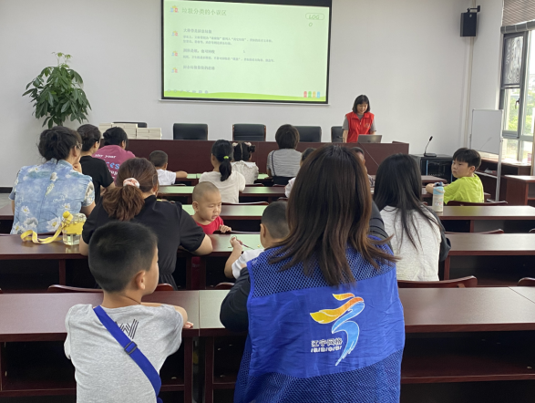 志愿者們通過垃圾分類游戲卡卡片將此次活動(dòng)拉開序幕,孩子們積極參與游戲中,“水果皮是廚余垃圾、紙片是可回收垃圾......”在志愿者們的幫助下,孩子們將游戲卡片一一對(duì)應(yīng)歸類放到不同的垃圾種類里。隨后,志愿者結(jié)合PPT和視頻為大家講解了垃圾分類的重要性和主要方法,向小朋友們講解生活垃圾的投放規(guī)則。講解了通過正確分類垃圾,可以最大限度地回收利用資源,減少環(huán)境污染。幫助小朋友們更好地區(qū)分那些容易混淆的生活垃圾,并提高孩子們的垃圾分類意識(shí)和投放準(zhǔn)確率。