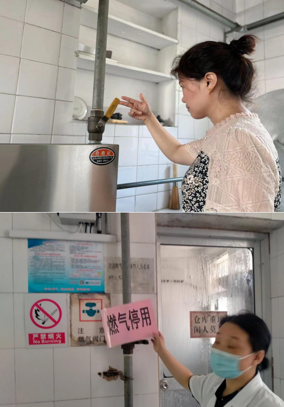 工作人員仔細查看了廚房內(nèi)燃氣設(shè)備的使用,包括有無熄火保護裝置、連接軟管是否老化、減壓閥是否可調(diào)、氣瓶距離灶臺是否超過0.5m等。