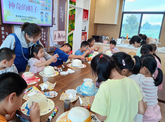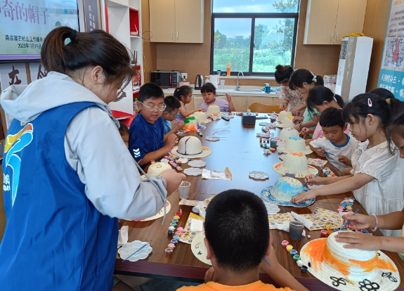 河南社區(qū):網(wǎng)格帶領(lǐng)暑托班DIY草帽