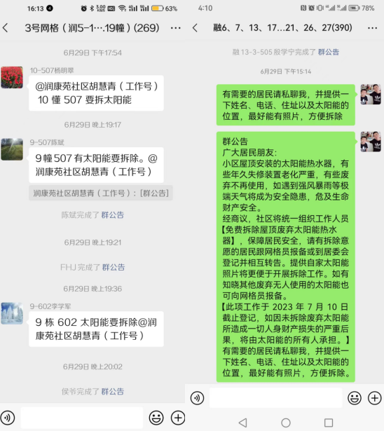 為消除安全隱患,潤康苑社區(qū)聯(lián)合街道物業(yè)公司共同采取了一系列措施來拆除廢棄熱水器。社區(qū)工作人員通過微信群定時推送信息,引導(dǎo)居民報名登記需要拆除的廢棄熱水器。經(jīng)過前期的排查,共登記到100余臺廢棄熱水器需要拆除,潤康苑社區(qū)將與街道物業(yè)公司合作,組織人員對潤康苑和融康苑兩個小區(qū)的廢棄熱水器進行逐步拆除。