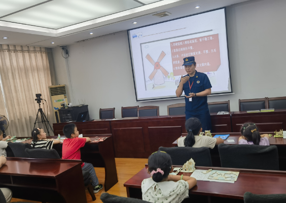 在現(xiàn)場(chǎng)工作人員的指導(dǎo)和志愿者的幫助下,大家捂住口鼻,彎腰前行,整個(gè)過(guò)程有條不紊,無(wú)擁擠、無(wú)滯留,井然有序地完成了消防逃生演習(xí)。演練結(jié)束后,消防救援大隊(duì)的講解員從發(fā)生火情應(yīng)及時(shí)撥打119報(bào)警、辨別火情、選擇合適的逃生路線等方面進(jìn)行了細(xì)致講解,提醒小朋友們?cè)诩抑谢蛘咂渌胤竭h(yuǎn)離易燃易爆品,同時(shí)宣傳預(yù)防火宅的重要性,提高對(duì)消防隱患的警惕與重視,為暑托班的小朋友們上了一堂生動(dòng)的消防安全課。