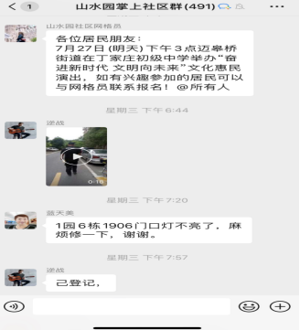 “溫馨提示:請(qǐng)未辦理門(mén)禁卡的居民可盡快到物業(yè)辦公室辦理。”“便民義診活動(dòng)來(lái)啦,請(qǐng)大家積極參與!”“退休工人體檢開(kāi)始了。”……在南京市棲霞區(qū)邁皋橋街道山水園社區(qū)掌上云微信群內(nèi),網(wǎng)格員及時(shí)發(fā)布消息,讓居民第一時(shí)間收到相關(guān)信息,給居民提供了一個(gè)高效接收信息的渠道,同時(shí)社區(qū)居民可以通過(guò)掌上云社區(qū)反映生活相關(guān)的問(wèn)題。社區(qū)定期組織線上線下議事協(xié)商,收集群眾的意見(jiàn)活建議,幫助居民排憂(yōu)解難,逐步實(shí)現(xiàn)社區(qū)治理共治、共享,激發(fā)社區(qū)治理活力。
