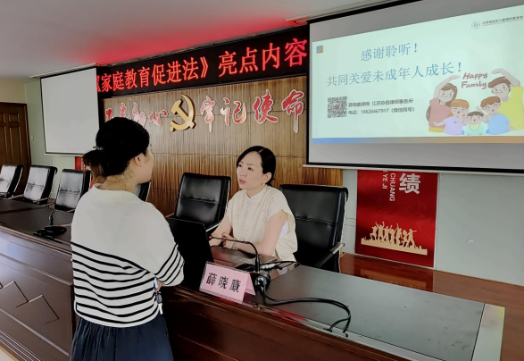 為進一步優(yōu)化婦女兒童生存和發(fā)展環(huán)境,發(fā)揮法治宣傳教育在維護婦女兒童合法權(quán)益、促進社會和諧穩(wěn)定中的重要作用,江蘇省婦女聯(lián)合會、江蘇省婦女兒童福利基金會聯(lián)合實施“我助婦兒康·婦兒權(quán)益維護與安全守護課堂”公益項目。為推動此項目在基層落地發(fā)芽,8月6日,南京市江寧區(qū)江寧街道新銅社區(qū)婦聯(lián)結(jié)合“三全”家庭教育支持行動,聯(lián)合江蘇協(xié)恒律師事務(wù)所,在家長學(xué)校開展了“我助婦兒康·婦兒權(quán)益維護與安全守護課堂”之“《家庭教育促進法》亮點內(nèi)容及案例解讀”法治宣傳講座。