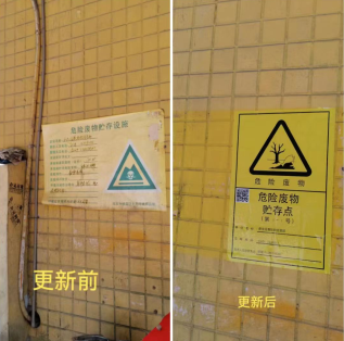 果場(chǎng)社區(qū)轄區(qū)內(nèi)涉及維修行業(yè)三家,巡查中,工作人員確認(rèn)已有兩家已對(duì)固廢危廢儲(chǔ)存間警告標(biāo)識(shí)更新及張貼,剩余一家已下載相關(guān)固廢危廢集中收集單位轉(zhuǎn)發(fā)的固廢危廢儲(chǔ)存間警告標(biāo)識(shí),暫未制作,工作人員督促該單位盡快制作完成并張貼到位。