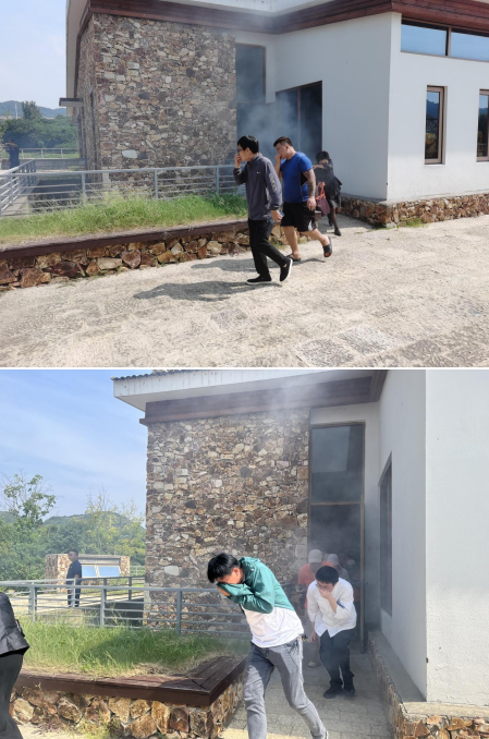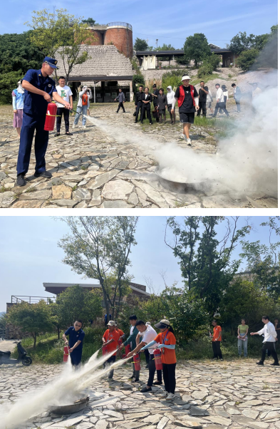 現(xiàn)場還根據(jù)培訓內(nèi)容,趁熱打鐵,進行緊急疏散及消防演練,通過燃放煙霧彈,模擬失火逃生,所有人均按照培訓所講,掩好摳鼻,按照逃生路線安排,彎腰逃生,到指定地點集合,進行消防演練。在消防大隊同志的指導下,大家按照一搖二拔三噴的使用要領,對干粉滅火器進行了滅火實操。