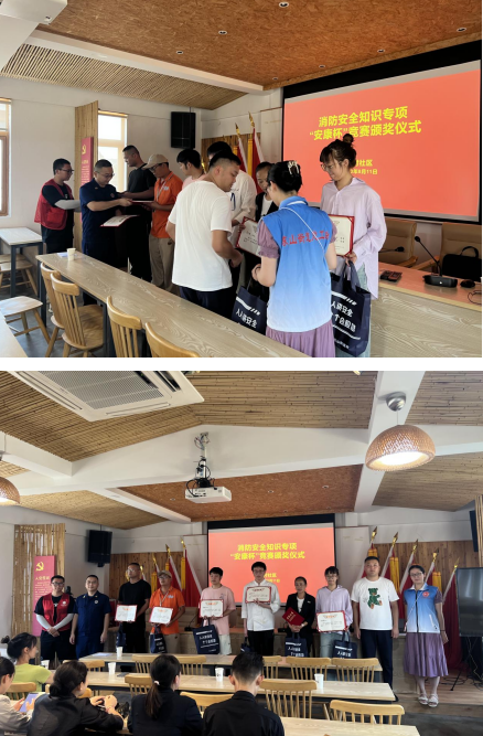 實操結(jié)束后,所有人返回會議室,結(jié)合消防大隊同志所講及演練所學,對各位參培人員進行現(xiàn)場測驗,開展線上知識競賽,對成績排在前六名人員,頒發(fā)證書及獎品。