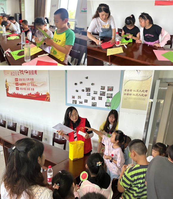 一把西瓜扇,巧手齊來(lái)做。用四張卡紙即可收獲一把可愛(ài)的西瓜扇子。社工還貼心地為每位小朋友準(zhǔn)備了一份小禮物——小小的電風(fēng)扇,為小朋友的夏日帶了一絲清涼。