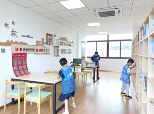 “小棲童夢”青少年志愿者自發(fā)清潔社區(qū)書屋環(huán)境,孩子們手拿抹布、掃帚,仔細地擦拭上下書柜,打掃里外角落,按書籍編號用心整理歸類室內(nèi)書籍刊物,能夠為大家提供一個干凈整潔的閱讀環(huán)境,青少年志愿者心里十分開心,也特別期待最終的成果。待到清潔結束時,已經(jīng)有孩子迫不及待坐下,前往書中的世界了。“我們是很開心的,看到他們可以安靜地坐下讀書。”家長紛紛支持這一活動,自發(fā)捐出一些圖書充實書屋,濃郁的書香氛圍充斥著整個社區(qū)。