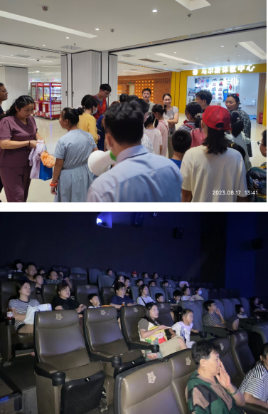 下午1點半,家長和孩子們興致勃勃的來到了馬群花園城幸福藍海影院,迫不及待的從黨員志愿者那領(lǐng)取了電影票,并合影留念。進入放映廳后,原本嘰嘰喳喳的小朋友都安靜下來,或抱著爆米花、抱著飲料,靜靜的等待電影的開始。