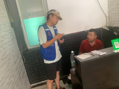 經(jīng)了解,該企業(yè)沒有烤漆房,社區(qū)人員走訪附近保安和商戶詢問,都表示該商戶不存在夜間噴漆的情況,聽該商戶負(fù)責(zé)人表述先前與人有嫌隙并發(fā)生爭執(zhí),存在惡意被投訴的可能性,盡管如此,社區(qū)環(huán)保工作者還是將違規(guī)噴漆違反大氣污染防治法的條款告知了該負(fù)責(zé)人,告誡其要合法經(jīng)營。在檢查過程中,雖未發(fā)現(xiàn)違規(guī)噴漆的情況存在,但該企業(yè)沒有合法的經(jīng)營執(zhí)照,經(jīng)過社區(qū)協(xié)調(diào)綜合執(zhí)法人員上門了解情況,是因為該門面房沒有合法的門牌號,無法作為經(jīng)營類場所來申請執(zhí)照。綜合執(zhí)法人員向商戶負(fù)責(zé)人開具了限期整改通知單,并要求其盡快辦理合法營業(yè)執(zhí)照。