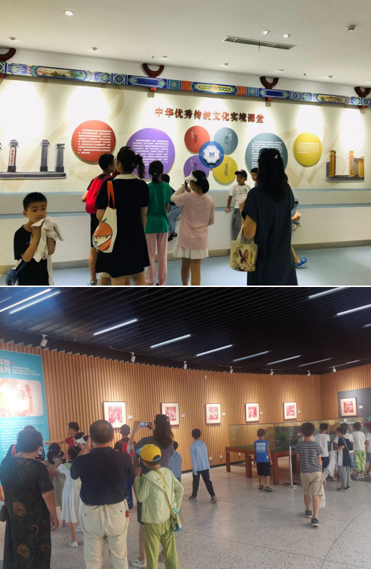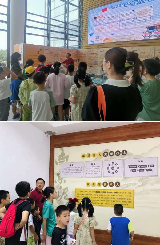 研學(xué)中,在圖書館田劍君老師的帶領(lǐng)下,小朋友們依次參觀了河海大學(xué)圖書館百年發(fā)展史、金壇刻紙展、密集書庫、外文書庫、噴泉魚池、南京泥人展和《紅樓夢(mèng)》中的茶文化主題展,大家認(rèn)真傾聽,在浩瀚書海與精美展覽中感受著圖書館的歷史變遷與中華優(yōu)秀傳統(tǒng)文化的魅力,讓閱讀種子與民族精神在孩子們心中生根發(fā)芽。