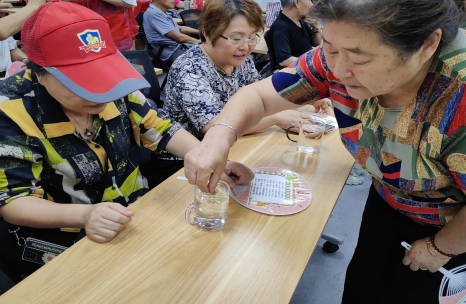 活動(dòng)現(xiàn)場(chǎng),志愿者生動(dòng)介紹七夕的來(lái)歷以及相關(guān)民俗活動(dòng),讓大家深刻體會(huì)乞巧活動(dòng)的文化寓意和內(nèi)涵,感受七夕文化所蘊(yùn)含的美好情懷。乞巧活動(dòng)精彩紛呈,在“穿針取巧”環(huán)節(jié),居民手拿五色彩線,找準(zhǔn)針孔細(xì)心穿線,比賽誰(shuí)穿得越快,乞到的巧就越多。大家聚精會(huì)神地捻線穿針,手藝巧的輕輕松松就穿進(jìn),穿針困難的居民也在志愿者的指導(dǎo)下穿線成功。“投針驗(yàn)巧”是通過(guò)把繡針?lè)湃胄纬伤さ娜萜髦?,看其能否漂浮、在容器底部形成圖案,以驗(yàn)智巧。居民們躍躍欲試,小心翼翼地放下細(xì)針,看著水杯中成功漂浮的銀針,露出燦爛的笑容。