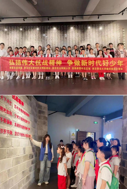 為了深入學習和傳承革命精神,激發(fā)青年的愛國情懷和責任感,9月3日下午馬群街道關(guān)工委、青春志愿同盟、青馬社區(qū)新時代文明實踐站、南京市太陽城小學、南京師范大學數(shù)科院向往青協(xié)聯(lián)合組織了一次紅色研學活動,參觀了南京民間抗日戰(zhàn)爭紀念館。