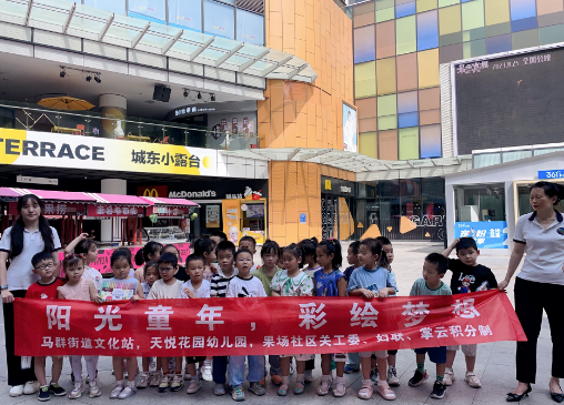 為不斷豐富社區(qū)居民文化生活內(nèi)涵,弘揚(yáng)熱愛生活、發(fā)現(xiàn)美好的社區(qū)文化,2023年9月8日至9月11日南京市棲霞區(qū)馬群街道果場社區(qū)、關(guān)工委、婦聯(lián)聯(lián)合轄區(qū)天悅花園幼兒園組織幼兒園學(xué)生、家長在馬群招商花園城開展“陽光童年 彩繪夢想”彩繪涂鴉活動,并將此次彩繪涂鴉畫布在馬群招商花園城進(jìn)行為期三天的展覽活動。