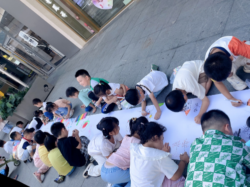 本次活動聯(lián)手轄區(qū)天悅花園幼兒園學(xué)生,在馬群招商花園城鋪上畫布進(jìn)行彩繪涂鴉活動。那一個個生動的彩繪圖案,一張張搞怪的涂鴉,都是孩子無拘無束的想象力和創(chuàng)造力的體現(xiàn)。孩子們使用繪畫這一藝術(shù)媒介,表達(dá)自己的情緒和情感。每個孩子的腦袋里,都裝著光怪陸離五彩斑斕的世界,用童真的思維詮釋藝術(shù)感知。他們用自己獨(dú)特的視角,不拘的構(gòu)圖,絢爛的色彩,隨心的筆觸描繪出一幅幅獨(dú)特的美好畫卷,訴說著他們對美好世界的看法。此次活動吸引了不少游客駐足觀看,并參與其中。