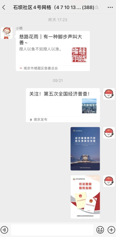 社區(qū)借助“掌上云社區(qū)”平臺,線上發(fā)布經(jīng)普知識鏈接、及時推送“普查單位清查告知書”及工作進度,向大家講解經(jīng)濟普查的目的、相關(guān)規(guī)定及重要意義,幫助轄區(qū)企業(yè)、商戶了解經(jīng)濟普查的重要性,引導(dǎo)普查對象積極配合普查工作,提供企業(yè)信息。此外,社區(qū)組織普查員,在轄區(qū)內(nèi)張貼宣傳海報,向企業(yè)及商戶發(fā)放宣傳頁,現(xiàn)場登記商戶信息,有序開展面向經(jīng)濟普查單位的清查工作,營造了濃厚的普查氛圍。