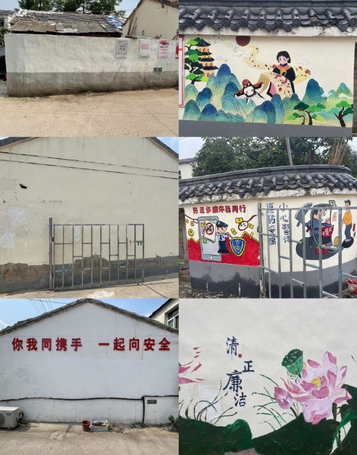 為改變城中村斑駁墻面,弘揚(yáng)熱愛(ài)生活、發(fā)現(xiàn)美好的社區(qū)文化,2023年9月馬群街道果場(chǎng)社區(qū)、果場(chǎng)社區(qū)居民學(xué)校、掌云+積分制工作小組聯(lián)合轄區(qū)青年志愿者,南京師范大學(xué)“向美而行”藝術(shù)下鄉(xiāng)實(shí)踐團(tuán)、困境兒童進(jìn)行陳家院墻面美化志愿活動(dòng)。