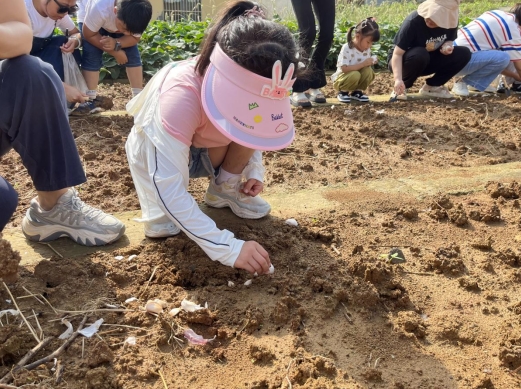 隨后,參與活動(dòng)的家庭們一同前往位于兒童童趣樂(lè)園的大蒜種植區(qū)域。在溫馨的氛圍中,孩子們熱情洋溢地佩戴著園丁帽,手持鏟子和大蒜種子,開(kāi)始一段奇妙的耕種之旅。他們雖然是新手,但在得到專(zhuān)業(yè)園丁的指導(dǎo)下,孩子們短時(shí)間內(nèi)掌握了種植的技巧。大家互相幫助,共同完成了大蒜的種植工作。孩子們面對(duì)一簇簇蓬勃生長(zhǎng)的大蒜,充滿興奮地跳躍著,感受著勞動(dòng)的成果和草木生長(zhǎng)的奇妙。
