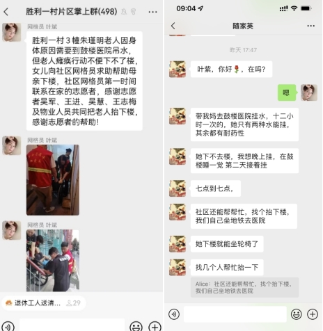 接到求助信息后,電瓷新村社區(qū)一號(hào)網(wǎng)格員葉斌馬上行動(dòng)起來。時(shí)間對(duì)老人的健康至關(guān)重要,因此迅速聯(lián)系在家的平安志愿者,連同物業(yè)人員共同把老人抬下樓。