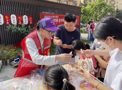此次活動中包含有團(tuán)扇制作體驗區(qū)、花燈制作講解區(qū)、漢服體驗區(qū)、中醫(yī)推拿體驗區(qū)以及其他一些娛樂活動。活動現(xiàn)場小區(qū)居民人頭攢動,大家臉上洋溢著笑容,紛紛表現(xiàn)出對此次活動的興趣。