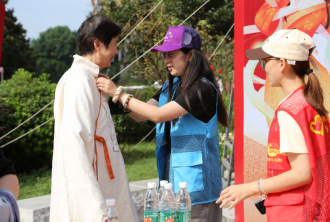 在漢服體驗區(qū),同樣也有著大學(xué)生志愿者在為大家介紹傳統(tǒng)服飾。漢服承載了中國染織繡等杰出的工藝和美學(xué),傳承了三十多項中國非物質(zhì)文化遺產(chǎn),講解的過程中吸引來了一批居民認(rèn)真聽講,大家紛紛表示學(xué)到了很多漢服的知識,最后大家都親自體驗試穿了漢服。