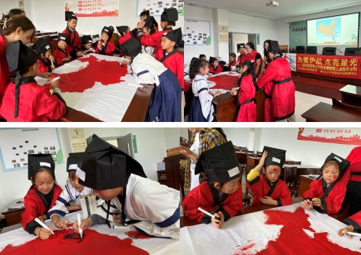 活動(dòng)最后,孩子們齊心協(xié)力,用筆繪制出了美麗的中國版圖,展示了對祖國的熱愛和祝福。