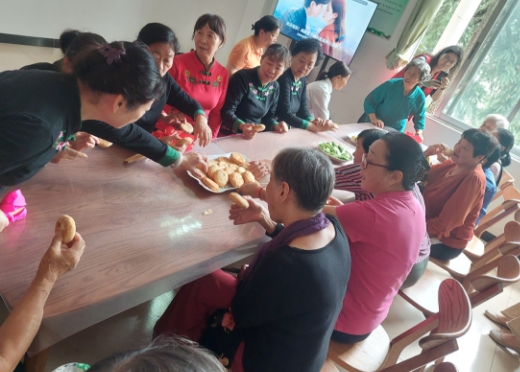 隨后,大家共坐一堂,在吃月餅、水果之間分享近期的生活感觸、對(duì)社區(qū)開展的各類文娛活動(dòng)的意見和建議。