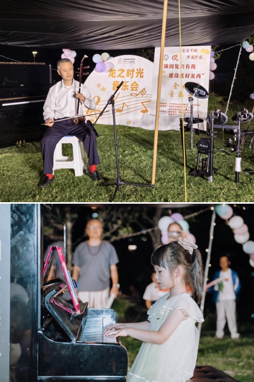 金秋時(shí)節(jié),在濱水綠地公園,旋律悠揚(yáng),歌聲縈繞。一場(chǎng)以“龍之時(shí)光——強(qiáng)國(guó)復(fù)興有我 建設(shè)美好龍西”為主題的龍之時(shí)光金秋音樂會(huì)華麗上演。本次活動(dòng)由東山街道新時(shí)代文明實(shí)踐所指導(dǎo)、龍西社區(qū)新時(shí)代文明實(shí)踐站主辦,學(xué)長(zhǎng)文化、知藝琴行、倍源美容養(yǎng)生會(huì)所贊助?;顒?dòng)以音樂為媒,通過露營(yíng)音樂+的模式,社區(qū)愛好樂器的居民朋友們歡聚在一片開闊的大草坪上,和200余位親屬、鄰居們一起在音樂與時(shí)光的交疊插敘中“大手牽小手”,在人與自然、天籟和鳴中建設(shè)龍西社區(qū)的藝術(shù)之美。