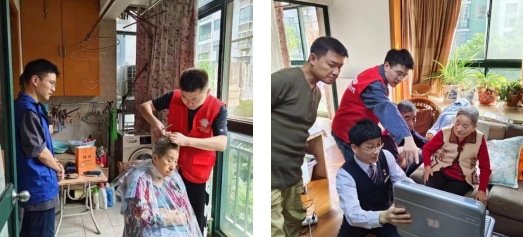 該戶家庭里有位百歲老人是前不久剛從老家接到這里來生活的,網格員同志對這戶家庭也是尤為關注經常聯(lián)系看是否有需要社區(qū)幫助的地方。當?shù)弥先诵枰戆l(fā)的時候立馬聯(lián)系了轄區(qū)內一家理發(fā)店老板馬師傅,馬師傅聽到上門為百歲老人理發(fā)也是義不容辭的答應了。