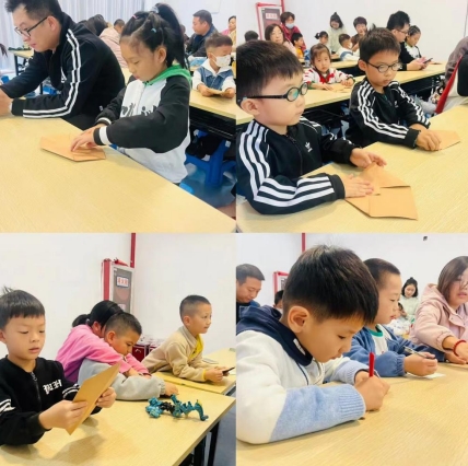 繪本故事結(jié)束后,社區(qū)志愿者繼續(xù)帶領(lǐng)小朋友們開(kāi)始了自己的雞毛信制作。小朋友們細(xì)致地疊了信封,在信紙上作畫寫字,隨著雞毛,將思念傳遞給自己最想念的人。