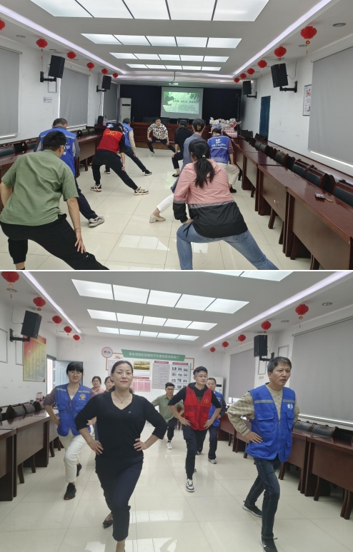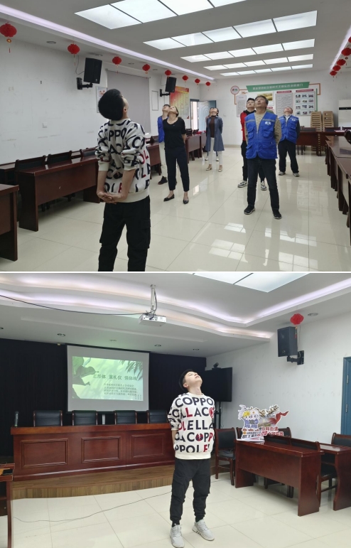 活動中,李老師先根據(jù)工會會員的具體工作,傳授了站姿,坐姿,特別是接待群眾時的一些正確肢體動作。接著,結(jié)合工會會員們長期伏案工作,由腰肌勞損及頸椎方面的問題,現(xiàn)場手把手地教起工會會員做起工間操,伴隨著輕柔緩慢地音樂,大家緩緩的抬頭,拉長脖頸,左右拉伸,“咔擦咔嚓”的關(guān)節(jié)聲也隨之而響,大家相視一笑?,F(xiàn)場笑聲不斷,揮灑汗水卻享受其中。最后,在李老師的耐心教導(dǎo)下,大家很快就練成了一套完整的工間操,不僅身體感到無比輕松,而且心情也無比順暢。工會會員們又精神抖擻地迅速投入了工作中。