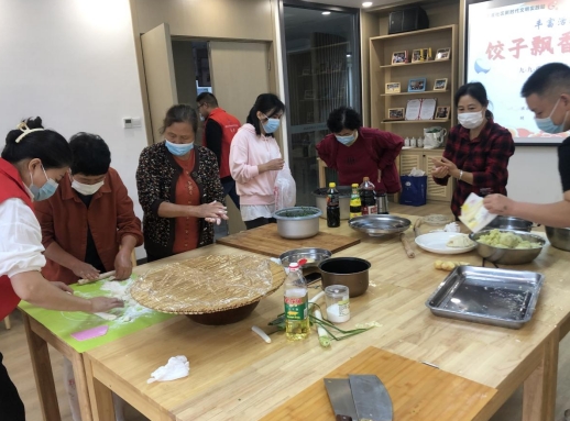 活動中,工作人員為大家準備好新鮮食材及工具,活動室一派繁忙景象,切菜、和面、調(diào)餡兒、包捏……大家分工明確、密切配合,有條不紊地忙碌著!大家把對老人的關懷和祝福一起包進代表幸福吉祥的餃子里,談笑風生中大家忙得不亦樂乎,以實際行動踐行孝善敬老傳統(tǒng)美德。