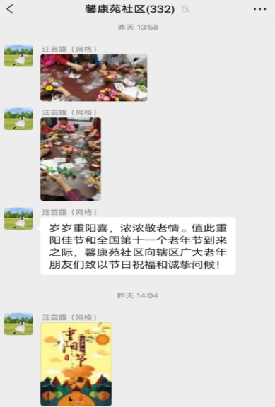 線上,社區(qū)依托“掌上云”各微信群,通過送節(jié)日祝福、發(fā)布倡議、優(yōu)秀典型宣傳、家庭助老展示等形式,祝福轄區(qū)廣大老人重陽節(jié)快樂,幸福安康同時,呼吁子女們常懷感恩之心,對父母多些關心、多些陪伴,倡議居民們傳承敬老愛老傳統(tǒng)美德,為老人們營造和諧溫馨的鄰里環(huán)境和社區(qū)環(huán)境,讓老年人樂享幸福晚年。“很有感觸,祝福所有老人節(jié)日快樂”、“老吾老以及人之老,善待今天的老人,就是善待明天的自己”、“傳統(tǒng)美德不能丟,敬老愛老需要我們實際踐行”、“百善孝為先,老人要的不多,一次探望,一通電話,就很滿足”、......居民們紛紛留言道。