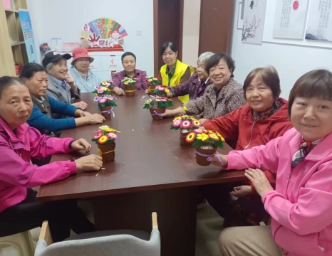 線下,10余名空巢獨居老人歡聚一堂,共同參與了“花樣過重陽”不織布盆花DIY活動。現(xiàn)場,老人們在志愿者老師的指導下,依次縫花盆、做填充、拼花朵、套花枝、插花束......近半個小時,一個個色彩絢麗的盆花就完成了,花盆中,菊花、太陽花、康乃馨錯落有致、爭奇斗艷。“這個重陽節(jié)真有意義,不僅能跟鄰里老人互動,還鍛煉了手和腦,完成的作品拿回去還能裝扮家里,今天很開心”。潘奶奶笑著表示道。