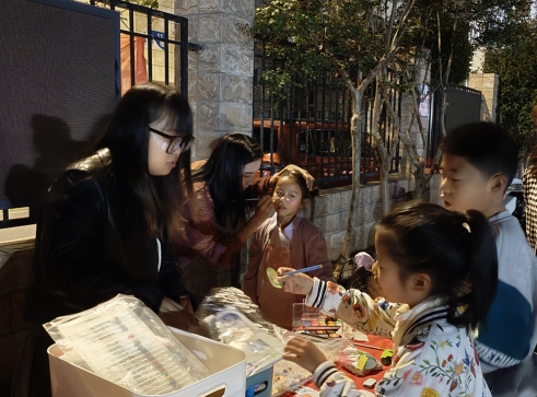 此次活動(dòng)以游園的方式進(jìn)行,通過中國傳統(tǒng)游戲加文體活動(dòng)相結(jié)合的方式進(jìn)行?;顒?dòng)現(xiàn)場(chǎng)定點(diǎn)投籃活動(dòng)熱火朝天,時(shí)而傳出陣陣歡呼;跳繩PK比賽精彩絕倫,現(xiàn)場(chǎng)氛圍緊張熱鬧。在運(yùn)動(dòng)中,孩子們感受著激情與快樂。一旁娛樂環(huán)節(jié)也如火如荼。孩子們?cè)谛埳蠈懴碌囊黄惨晦嘀懈惺苤仃栁幕c人文精神;在握、瞄、投的一次次投壺中體味著這一中國古代傳統(tǒng)活動(dòng)的魅力。孩子們臉上的彩繪五彩絢麗,手中的的自制發(fā)卡獨(dú)一無二。每個(gè)游戲臺(tái)前都排起了長長的隊(duì)伍,精彩紛呈的傳統(tǒng)文化展示與體驗(yàn)贏得陣陣掌聲。