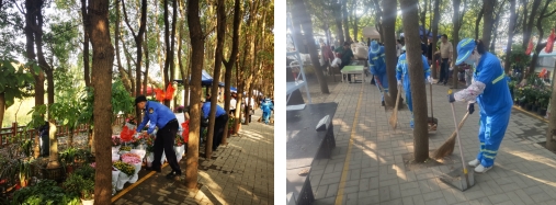 菊花展期間,城管隊(duì)員針對(duì)菊花展周邊非機(jī)動(dòng)車亂停亂放、機(jī)動(dòng)車違停等行為進(jìn)行及時(shí)清理疏導(dǎo),規(guī)范樂農(nóng)集市內(nèi)商戶經(jīng)營(yíng)秩序;環(huán)衛(wèi)工人對(duì)菊花展周邊道路兩側(cè)綠化帶、草坪,樂農(nóng)集市內(nèi)攤位等區(qū)域衛(wèi)生死角進(jìn)行全面清理。