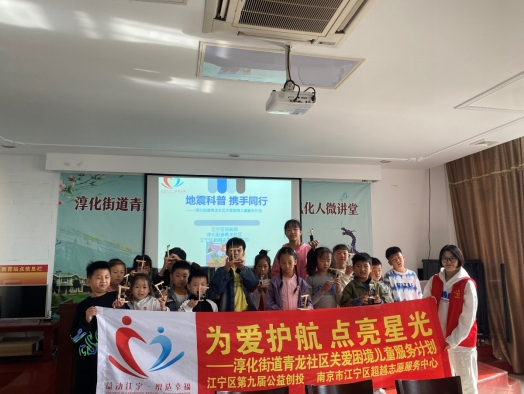 為進一步加強青龍社區(qū)兒童防震減災知識的宣傳教育,增強他們地震應急處置能力,以期實現(xiàn)“教育一個孩子,影響一個家庭,帶動一個社會”的目標。南京市江寧區(qū)淳化街道青龍社區(qū)聯(lián)合南京市江寧區(qū)超越志愿服務中心于10月28日上午開展了“地震科普 攜手同行”活動。