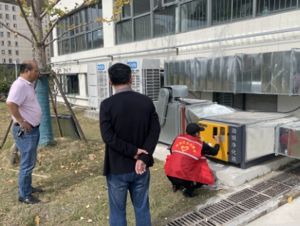 巡查中,大家現(xiàn)場通過“碼上洗”平臺,查看并上傳了食堂近期油煙凈化設(shè)施的清洗臺賬,現(xiàn)場與食堂工作人員進(jìn)行油煙污染防治的知識宣傳;在單位固廢危廢倉庫,查看了近期存貯、運(yùn)輸、清理的臺賬,記錄清晰,流程正常。