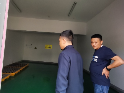 果場社區(qū):巡查駐地單位食堂餐飲油煙防治情況及固廢危廢倉庫
