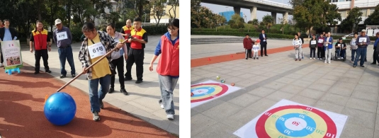 根據(jù)殘疾人的身心特點(diǎn),運(yùn)動(dòng)會(huì)設(shè)置了保齡球、夾彈珠、定點(diǎn)沙包等八個(gè)趣味性運(yùn)動(dòng)項(xiàng)目。殘疾人朋友們積極認(rèn)真參與到各項(xiàng)運(yùn)動(dòng)中,社區(qū)志愿者在旁為他們加油打氣,整場(chǎng)運(yùn)動(dòng)會(huì)充滿了歡聲笑語。