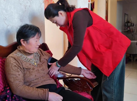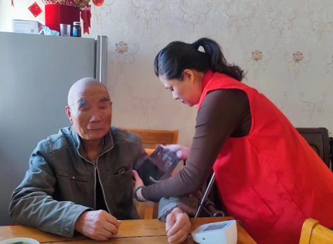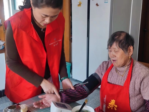 牛首社區(qū)呵護(hù)老人,細(xì)心測壓,文明實(shí)踐