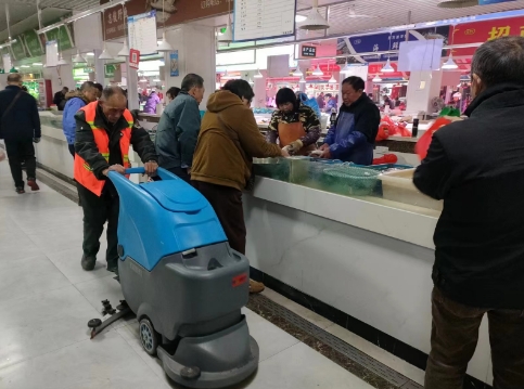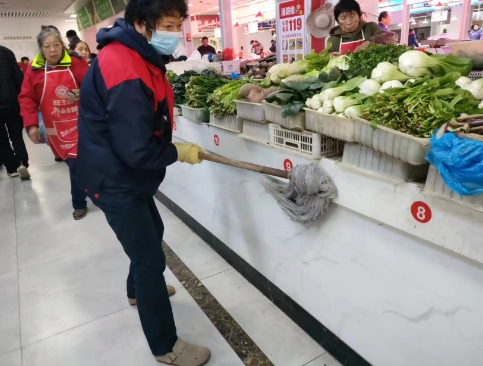 “請經(jīng)營戶運菜的三輪車停放在固定的停車位上”、“請買菜的電瓶車有序的停放好”、“請不要把摘下的菜葉丟在地上,放到垃圾桶內”、“請熟食區(qū)的經(jīng)營戶戴好口罩和帽子”、“請不要在市場內吸煙”……每天,西洋橋菜市場南通勁玥物業(yè)管理有限公司物管人員都會重復這樣的文明行為宣傳。