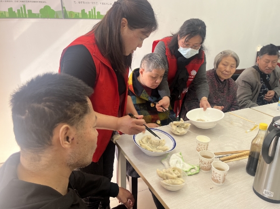 接下來,就是包餃子的環(huán)節(jié)。殘疾人之家提前準備好包餃子所需的食材和器具,志愿者們興致高昂地動手參與其中,他們揉面、包餡,創(chuàng)造美味佳肴。經過一番辛勤努力,大家共同完成了一桌豐盛的餃子并把這些餃子送給行動不便的老人和殘疾人。