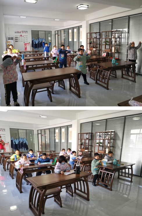 天氣漸冷,孩子們說感覺耳朵和手都要凍掉了,為了讓孩子們快速適應,志愿者帶孩子們一起跳小動物模仿操,感受運動前后的變化。緊接著,孩子們挑選自己喜歡的繪本閱讀了起來,仿佛剛剛的寒意已經全部褪去,孩子們暢游在書海,感受“書中自有黃金屋”的美妙。