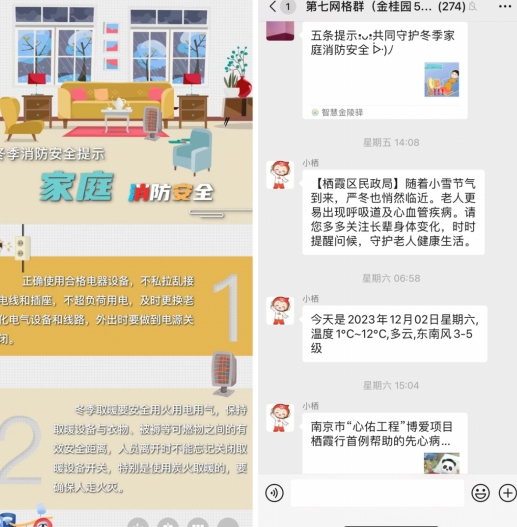 金陵驛社區(qū)充分利用掌上云網(wǎng)格群、微信公眾號(hào)等新媒體,每日不定時(shí)推送節(jié)日安全知識(shí),擴(kuò)大安全宣傳的覆蓋率和知曉率。網(wǎng)格員也會(huì)向居民細(xì)致耐心地講解了冬季取暖安全知識(shí),引導(dǎo)居民在冬季時(shí)刻做好家中取暖安全,預(yù)防因取暖不當(dāng)引起消防安全事故。